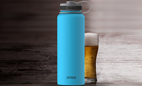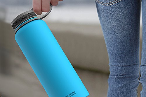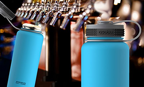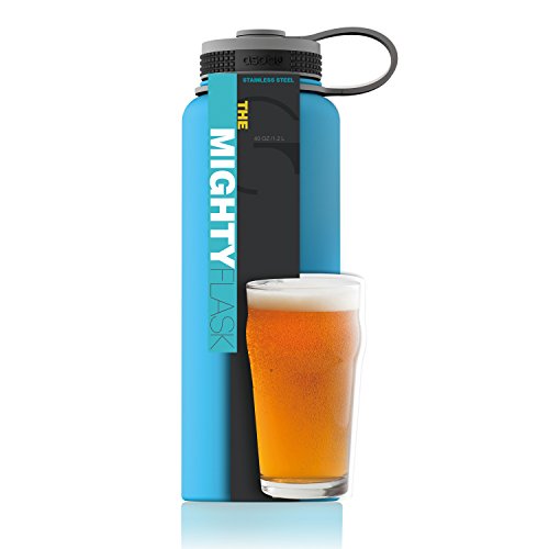 Asobu, The Mighty Flask, Wide Mouth Water Bottle, Stainless Steel, 40 oz., Blue
