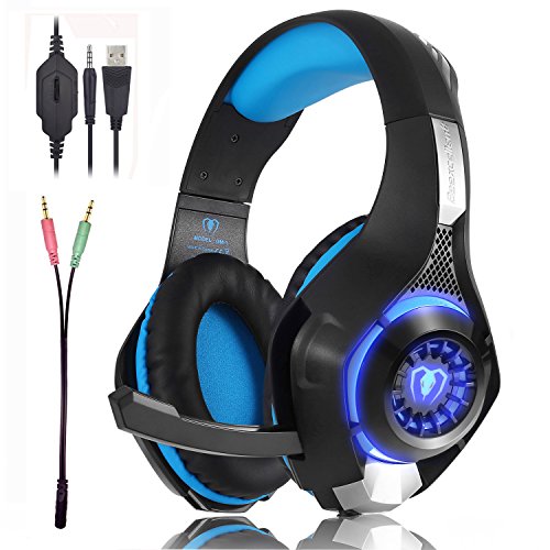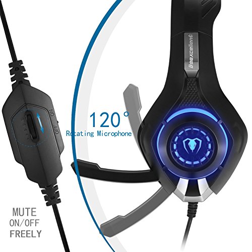 Beexcellent Gaming Headset GM-1 with Microphone for New Xbox 1 PS4 PC Cellphone Laptops Computer - Surround Sound, Noise Reduction Game Earphone-Easy Volume Control with LED Lighting 3.5MM Jack(Blue)