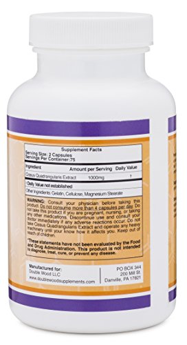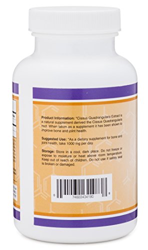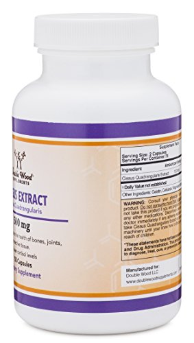 -. Binding : Health and Beauty -. Brand : Cissus Quadrangularis -. EAN : 0685349903238 -. Feature : MADE IN THE USA AND TESTED INDEPENDENTLY- Our Cissus Quadrangularis Super Extract (sicyoides) is manufactured in the USA by a cGMP facility that is regularly inspected by the FDA. We also conduct independent testing on the safety and purity of our product. / 100% MONEY BACK GUARANTEE - We don't want anyone to feel ripped off and provide a no questions asked money back guarantee. / SUPPORTS JOINT HEALTH - Cissus Quadrangularis Extract has been shown to help reduce joint pain and promote healthy joints / SUPPORTS BONE STRENGTH - Helps improve bone density and overall bone health. / ANTI-INFLAMMATORY - Cissus Quadrangularis Extract helps reduce inflammation when taken as a supplement. -. IsAdultProduct : 0 -. Label : Double Wood Supplements -. Manufacturer : Double Wood Supplements -. MPN : DWCQE -. PackageQuantity : 1 -. PartNumber : DWCQE -. ProductGroup : Health and Beauty -. ProductTypeName : HEALTH_PERSONAL_CARE -. Publisher : Double Wood Supplements -. Studio : Double Wood Supplements -. Title : Cissus Quadrangularis Super Extract , 150 Capsules, Made in the USA, Dietary Supplement for Joint and Tendon Pain -. UPC : 685349903238