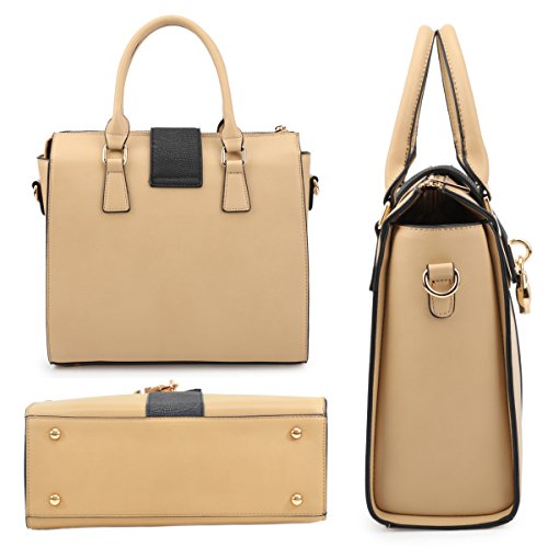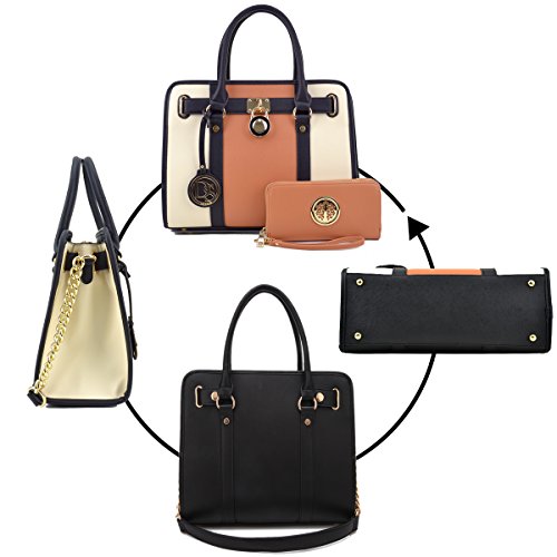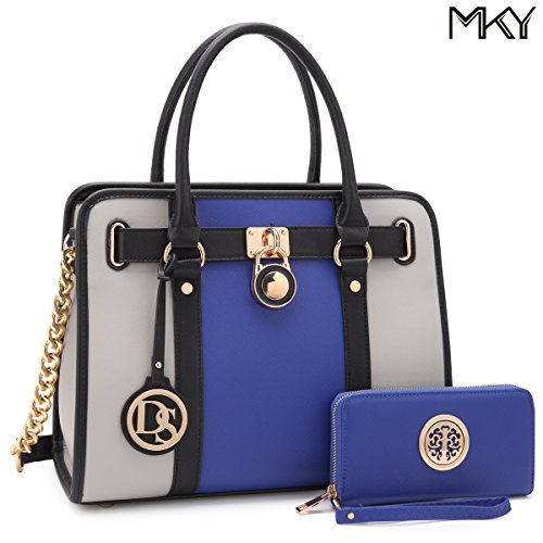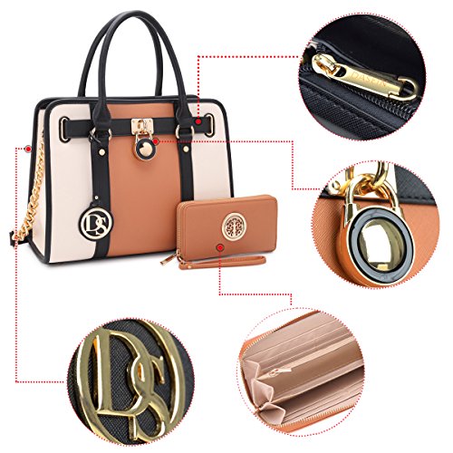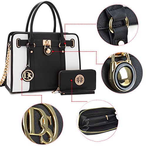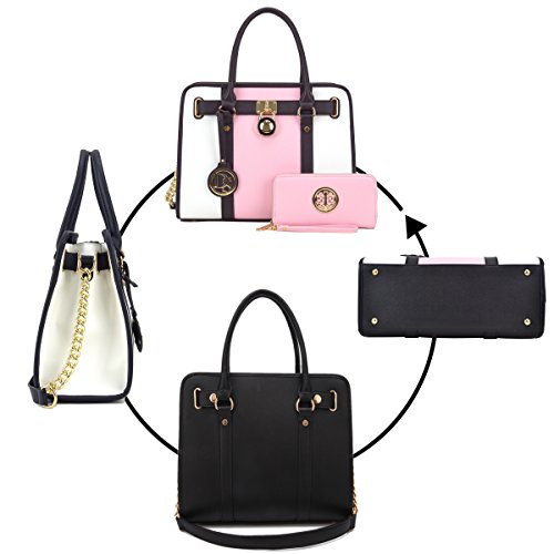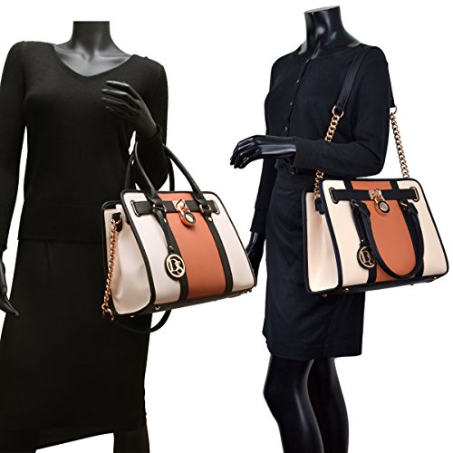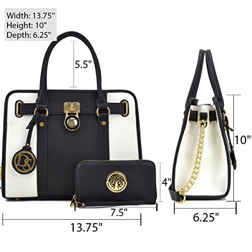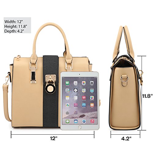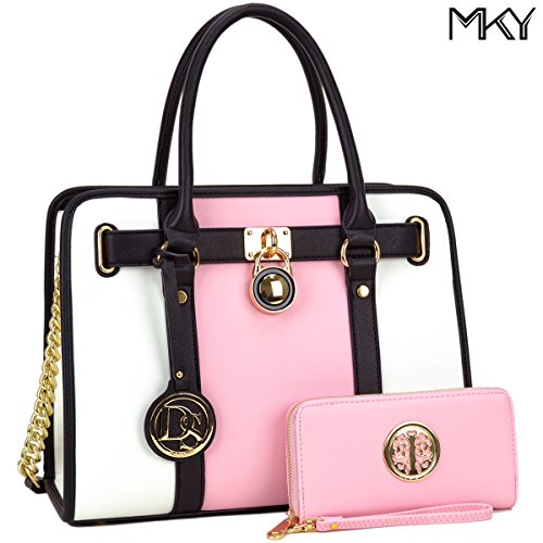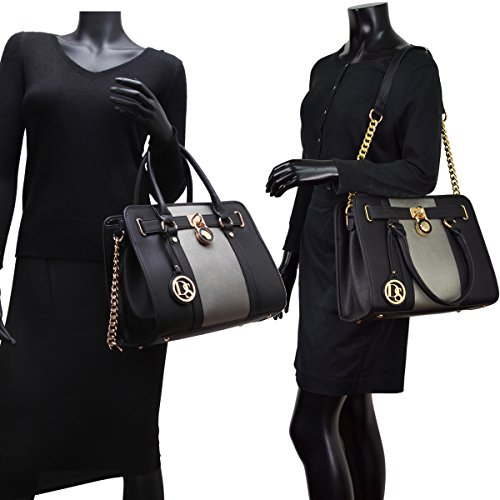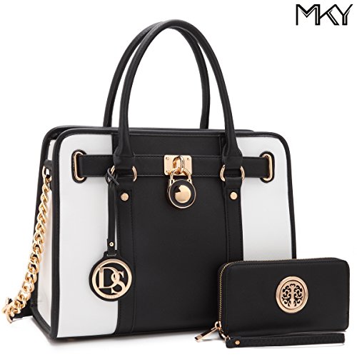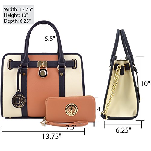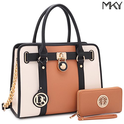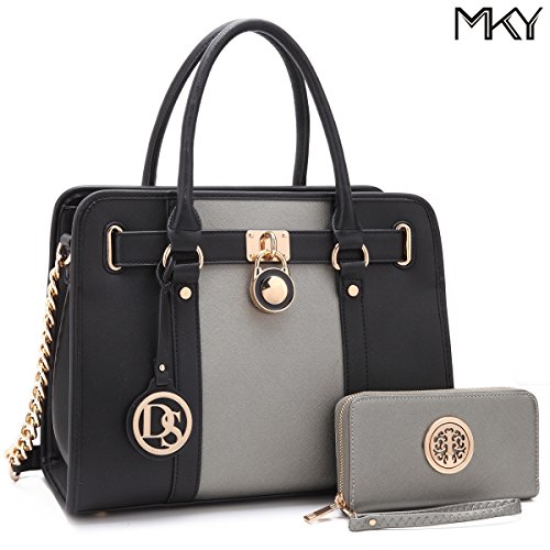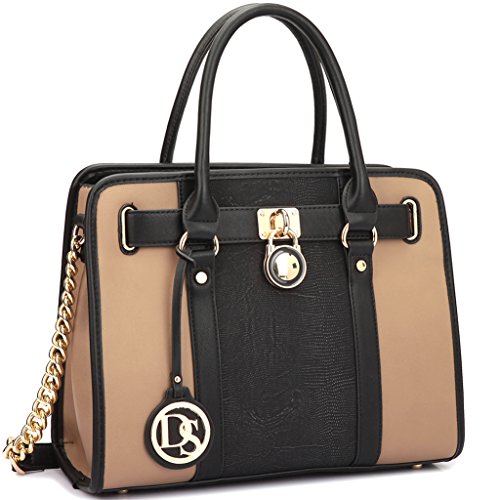 | Medium Satchel Handbag Designer Large Purse Two Tone Padlock w/ Shoulder Strap |
