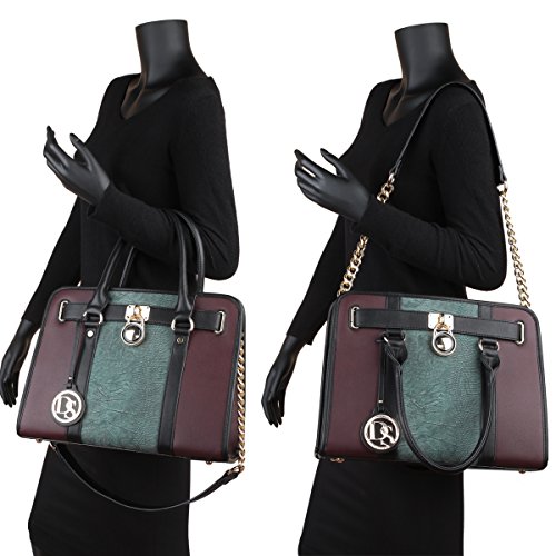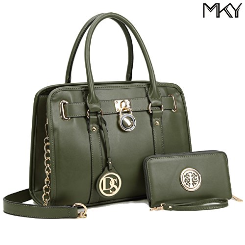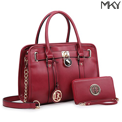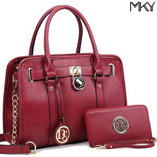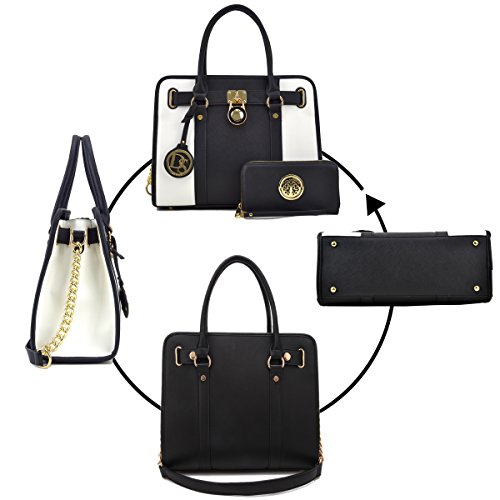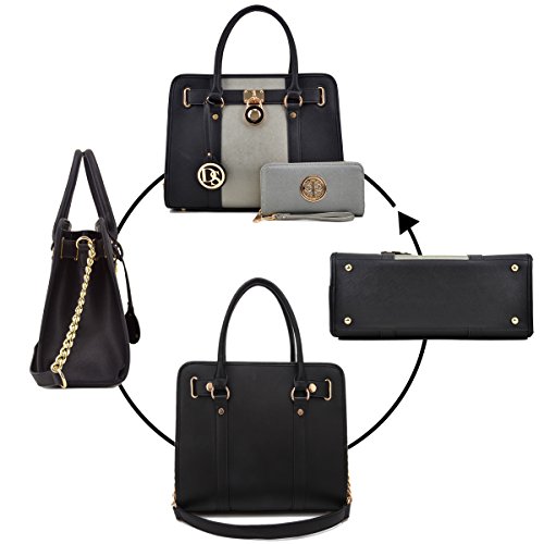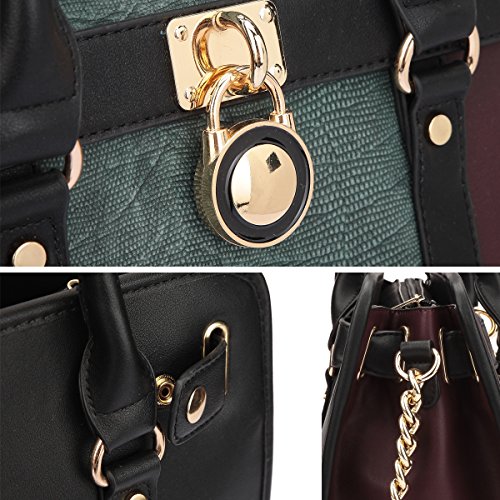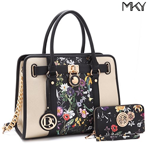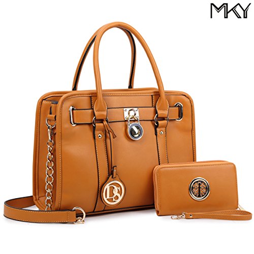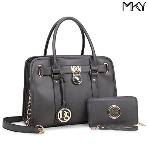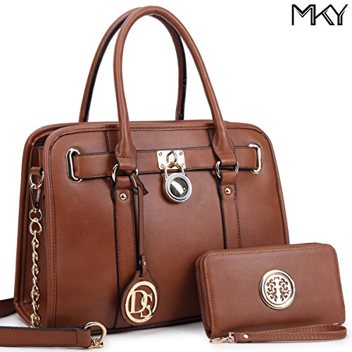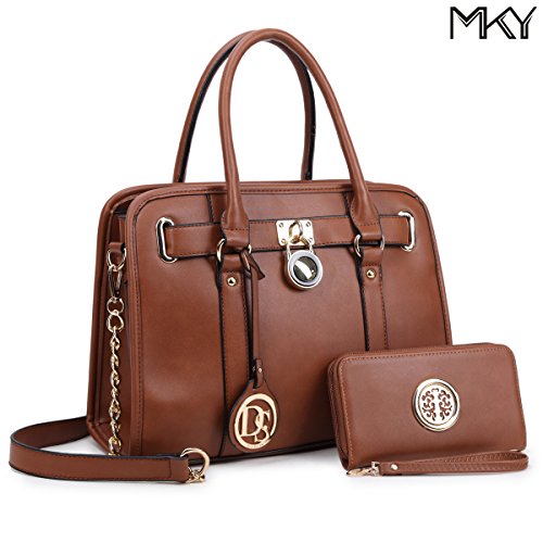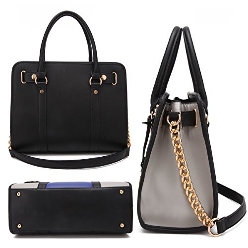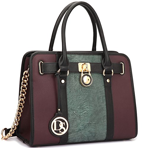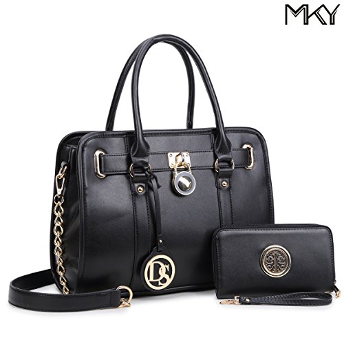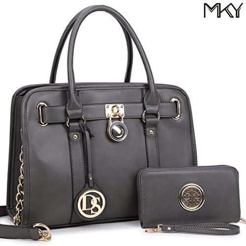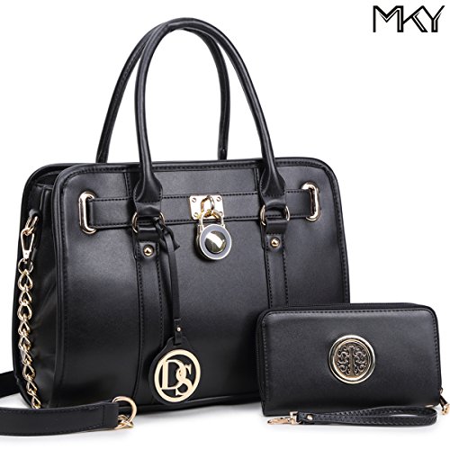 | Medium Satchel Handbag Designer Large Purse Two Tone Padlock w/ Shoulder Strap |
