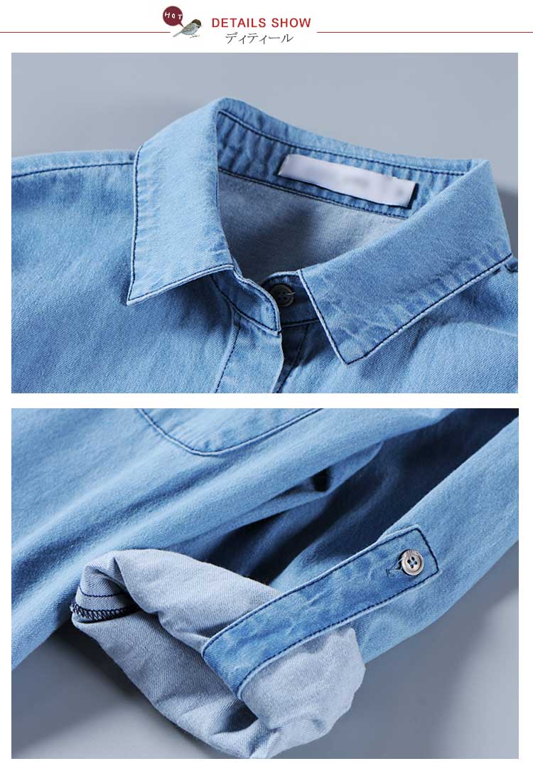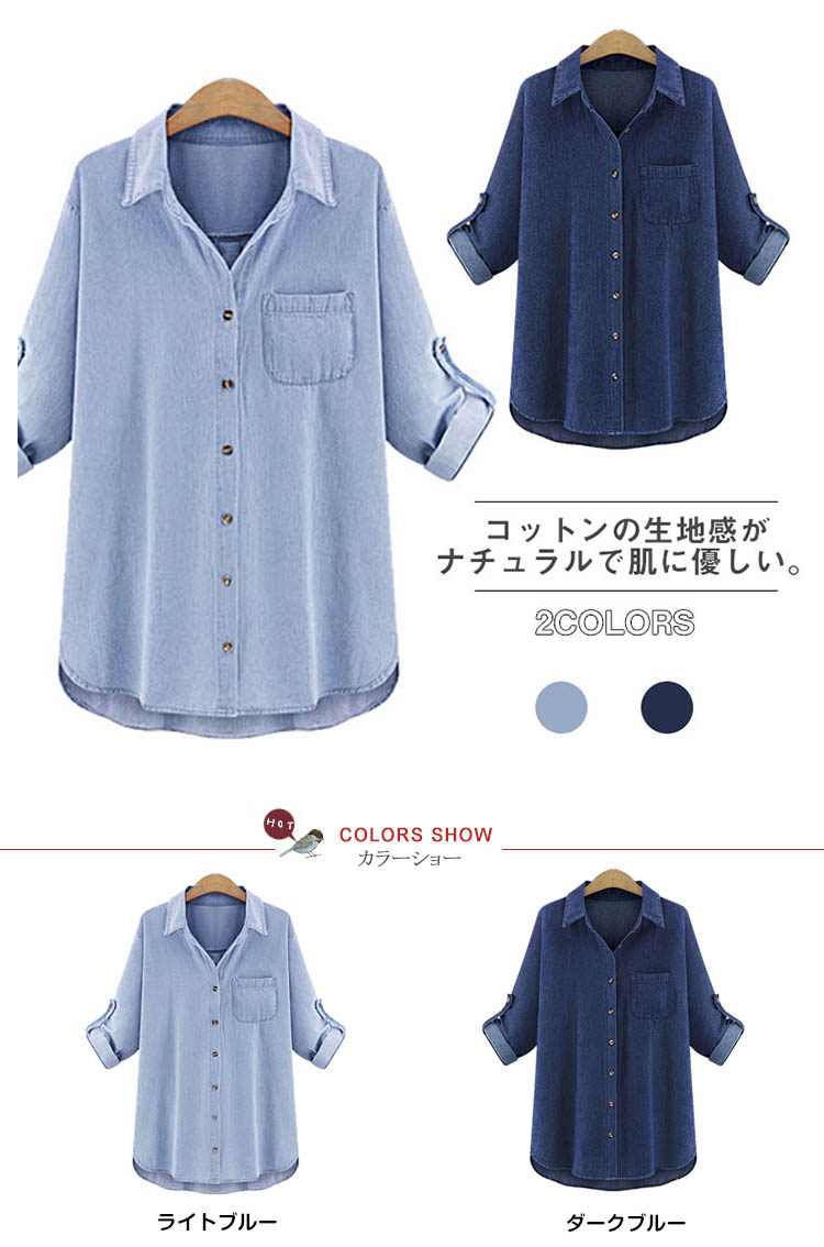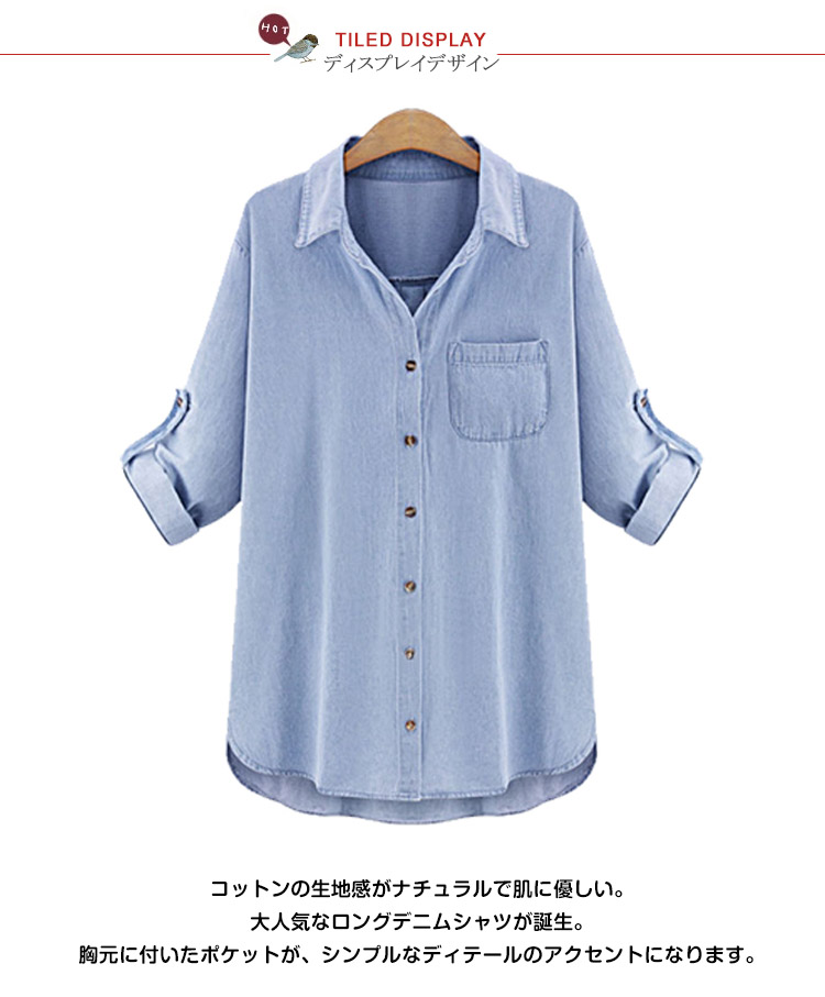 | コットンの生地感がナチュラルで肌に優しい。大人気なロングデニムシャツが誕生。胸元に付いたポケットが、シンプルなディテールのアクセントになります。袖口にはボタンが付いているので、袖を下していても、ロールアップしてもスッキリとしたシルエットを演出します。オーバーサイズになっているので一枚で着ても窮屈感のないシルエットになっており、ルーズなシルエットが“今っぽさ”を作りだします。オールシーズン使えるデニムシャツは持っていないと絶対損なアイテムです。 | |
