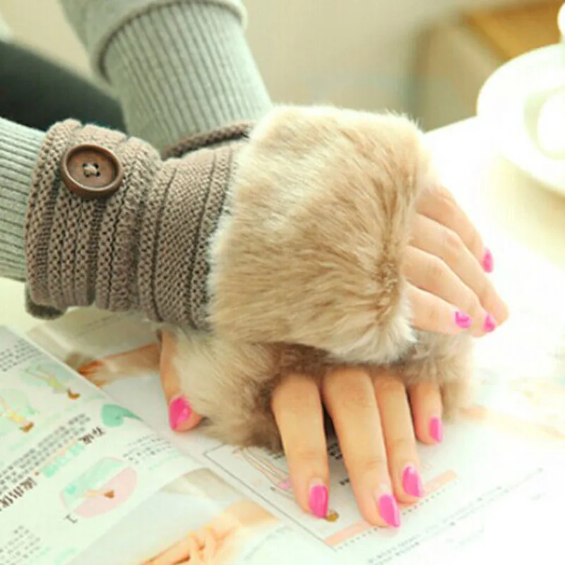 Model Number:Women Girl Warm Winter Faux Rabbit Fur Wrist Fingerless Gloves Mittens