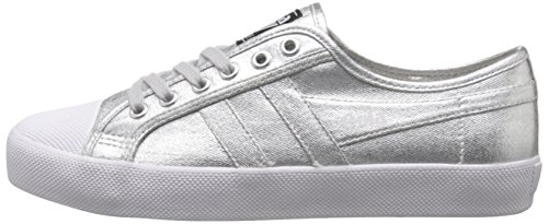 Making its first debut in 1976, the gola ladies coaster metallic trainer was described as the superior quality, canvas, sports and leisure shoe. This fashion inspired retro plimsoll is a versatile style that personifies a true british heritage and has been re released for SS16Feature