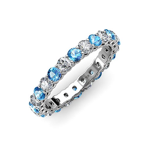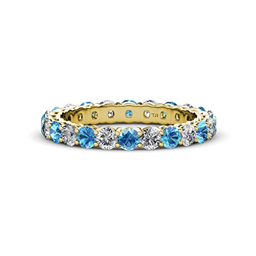 -. Binding : Jewelry -. Brand : TriJewels -. Department : womens -. Feature : 2.10 ct tw to 2.52 ct tw Blue Topaz and Diamond Shared Prong Eternity Band in 14K Gold. / SI2-I1-Clarity, G-H-Color Diamond & SI1-SI2-Clarity, Blue-Color Blue Topaz. / Gemstones may have been Treated to Improve their Appearance or Durability & may Require Special Care. / The Natural Properties & Composition of Mined Gemstones define the Unique Beauty of each Piece. The Image may show Slight Differences to the Actual Stone in Color & Texture. / All our Diamonds to our Best Knowledge are not Conflict Diamonds. -. Label : TriJewels -. Manufacturer : TriJewels -. Model : R-1044610DBT -. MPN : R-1044610DBT -. PartNumber : R-1044610DBT -. ProductGroup : Jewelry -. ProductTypeName : FASHIONRING -. Publisher : TriJewels -. Studio : TriJewels -. Title : Blue Topaz & Diamond 3mm Shared Prong Eternity Band 2.10 ct tw-2.52 ct tw in 14K Gold