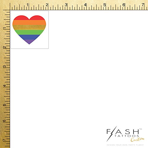 -. Feature : Set includes 25 individual RAINBOW HEART Flash Tattoos in red, orange, green, blue, purple and metallic gold colors. Single tattoo size: 2" x 2" / Pre-cut tattoo cards for easy set-up and display at events with simple application and removal instructions on the back of each tattoo card / Lasts 4-6 days (water and sweat proof) - non-toxic and safe for anyone to wear. Highest quality foil with a premium adhesive for a long-lasting shine! / Original temporary tattoo brand, as seen on Beyonce....easy to quickly apply-just add water! / Flash Tattoos 'RAINBOW HEART' Party Flash set - perfect for sP.R.Ing/summer vacations, birthday parties, pool, festivals and much more!