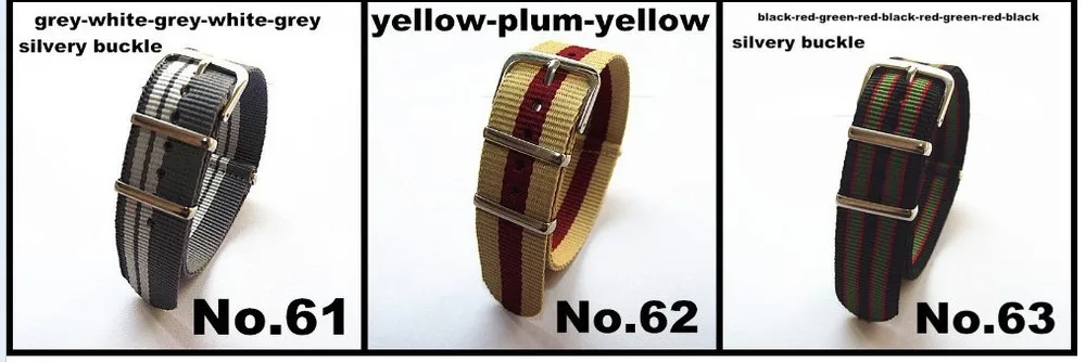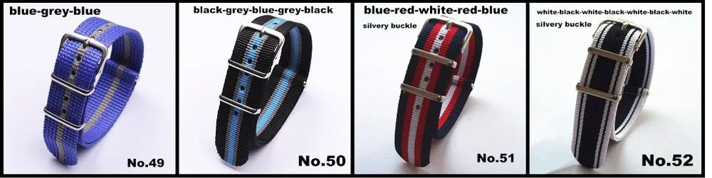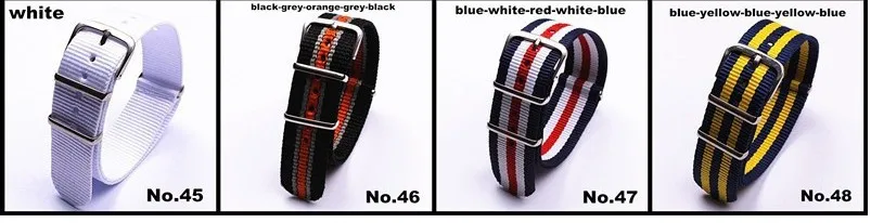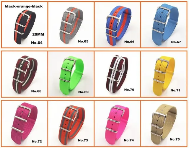 20 미리메터 나토 스트랩 새로운 색상 도착 600 개 고품질 20 미리메터 나일론 시계 밴드 nato 스트랩 방수 시계 스트랩 크기: 길이: 26.5 센치메터 (버클 길이: 27.5 센치메터) 폭: 20 미리메터 무작위로 선택할 수 있습니다 색상
