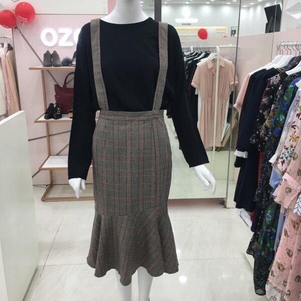 모직 느낌의 체크 멜빵 스커트 소개해드려요. 가을시즌과 잘 어울리는 체크 패턴으로 스트랩은 탈부착이 가능하여 심플한 머메이드 스커트로도 활용가능합니다.사이즈는 조금 타이트하게 나온 정사이즈입니다.