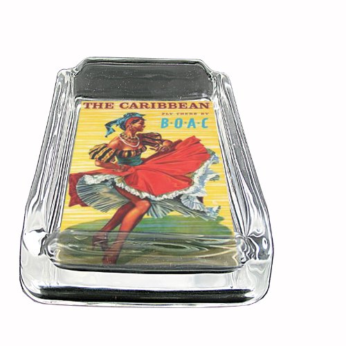-. Title : Glass Square Ashtray Caribbean Vintage Travel Poster Whiskey D-387