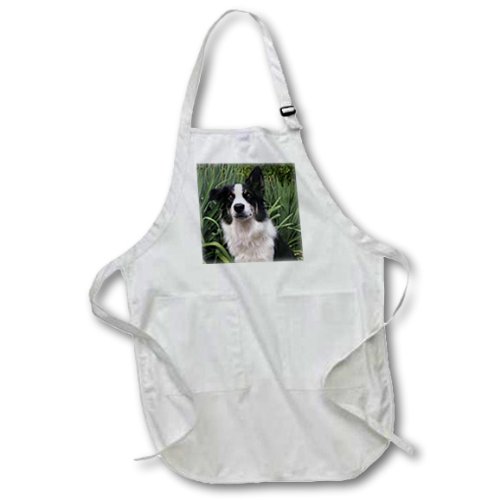 3dRose Border Collie 2 - Full Length Apron, 22 by 30-Inch, White, with Pockets (apr_154686_1)