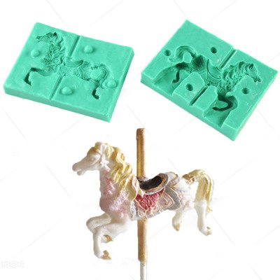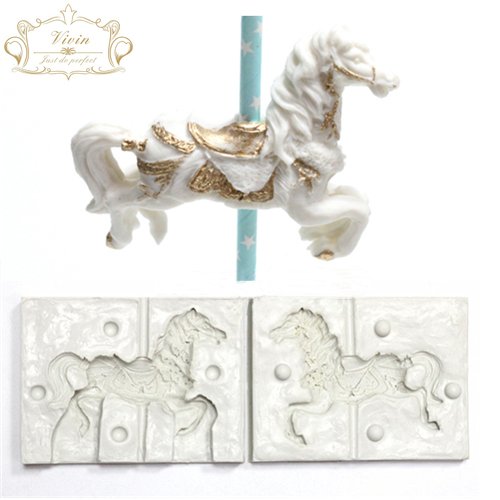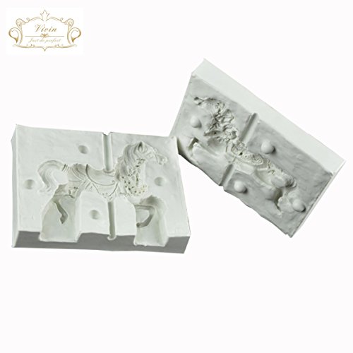 3d Carousel Horse Silicone Fondant Mould Sugar Paste Cake Cupcake Design Mat Silicone Mould for Cake Decorating Cupcakes Sugarcraft Candies Make Whole Horse Large
