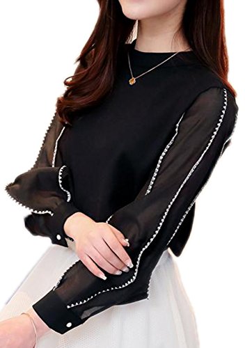 -. Feature : カラー:白(ホワイト)、黒(ブラック) メイン素材:ポリエステル セット内容:ブラウス サイズ:S、M、L、XL(※サイズは商品画像、商品説明に記載しております。) / シャープなスタンドカラーのネックライン、ステッチラインの入った特徴的で透け感のあるパフスリーブが女性らしさを最大限に引き出してくれる、フェミニンな大人ブラウスです。きっちりめのデザインとすっきりとしたモノトーンカラーは、オンオフ問わずに着まわせます。デートやおでかけ、パーティーやデート、女子会、お呼ばれはもちろん、通勤やオフィスなどでも使えます。見ごろはしっかり目の生地なので、寒い季節にも着られます。 / オールシーズン使えちゃう、うれしい長袖。春秋は薄手のカーディガンを羽織ってフェミニンに。夏は涼しげに1枚で&袖をロールアップしてカッコよく。冬は厚手のかっちりジャケットでデキるオンナのコーデに♪ フォーマル感の強いブラウスなので、ボトムスはラフ感の少なめなチノパンやタイトスカート、フレアスカートがおすすめ。コーデのしやすいモノトーンカラーのラインナップです。 / 飽きのこないブラウスは、お仕事やビジネス、通勤や営業などのフォーマルな場面でも使えますが、ホームパーティーやお誕生日会などのカジュアルなお呼ばれにも、きれいめシャツとして着こなしできる、可愛いブラウスセレクト。礼服やスーツなどのフォーマルセットアップにも欠かせないアイテムは、春夏秋冬、季節を問わずにオールシーズンで活躍します。ストールやスカーフなどのファッション小物とも相性バツグン。足元は、ブーツやブーティはもちろん、ヒールやパンプスなどと合わせると、こなれ感がUPします。 / AngelMoon(エンジェルムーン)はブラウス、ワンピースをはじめ、チュニック・シャツ・カットソー・セーター・カーディガン・トレーナー・パーカー・キャミソール・タンクトップなどのアウターやインナー、タイトスカート・ミニスカート・ロングスカート・ワイドパンツ・ガウチョパンツ・スキニー・レギンス・サブリナパンツ・チノパンなどのボトムス、ウィッグ、ストール、スカーフ、バッグなどのファッション小物など、オールシーズン着られるものや、春、夏、秋、冬、の季節に合わせ、20代、30代、40代と年齢を問わずおしゃれを楽しんでいただける、トレンドを押さえたレディースファッションを取り揃えています。