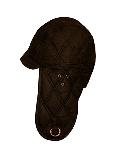 Product Description A quilted oilskin aviator hat with slim peak brim double 'D' chin strap to close the earflaps. Fabric type: 100% Cotton, MicroWax Oilskin 0