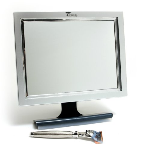 Studio : ToiletTree Publisher : ToiletTree Binding : Kitchen Product Description The ToiletTree Deluxe LED Fogless Shower Mirror TTP-LED-01 will make shaving and self-grooming in the shower an easier and much more efficient task. The mirror stays fog and condensation free in even the steamiest of showers with a built-in refillable water reservoir on the back. The reservoir is filled with hot water to keep the mirror the same temperature as the environment in your shower and does not need to be treated with any anti-fogging sprays, chemicals, or special coatings. You won't have to worry about missing a spot since the mirror conveniently mounts to nearly any shower wall with soft silicone adhesives, and it easily adjusts to give you even tighter control of your mirror's position. In addition to the adjustability, the mirror's LED lighting provides full frame illumination so you can see every part of your face clearly. Along with being a nifty and convenient shower accessory it is also a great organizational tool with a built-in shelf for razors, sponges, and tweezers, and a built-in squeegee to wipe away excess water drops and prevent hard water stains from forming. 0