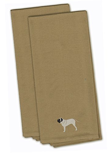 Caroline's Treasures BB3456TNTWE English Mastiff Tan Embroidered Kitchen Towel (Set of 2), 28" x 19", Multicolor