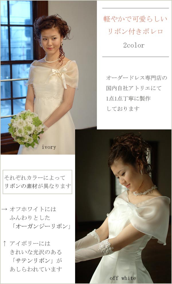*オフホワイトにはオーガンジーリボンを、アイボリーにはサテンリボンをあしらっております。 (写真1枚目:アイボリー、2枚目:オフホワイトです) |