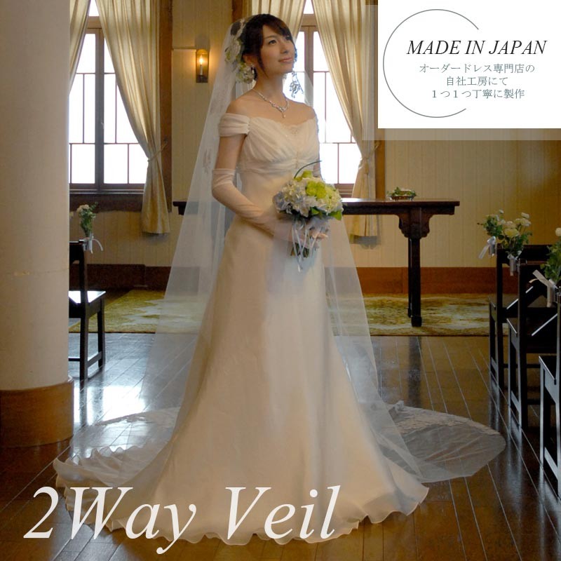 ★ご購入の際には櫛をベールに固定させた形もお選びいただけます。 1、2wayタイプとして櫛なし ・・櫛は外した状態でお届けします。着用時のアレンジ幅が広がります。 (幅230cm×縦300cm) 2、マリアタイプに櫛固定 ・・櫛を糸で縫いつけてお届け。 (幅230cm×縦300cm) 3、フェイスアップタイプに櫛固定 ・・前65cm×後260cm×幅230cmの仕上りに櫛を糸で縫いつけてお届けします。 (*こちらの場合は櫛部分に少しギャザーを寄せるため櫛を外してアレンジすることは不可)
