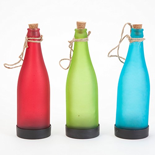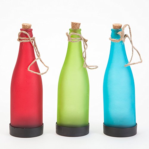 Bits and Pieces - Light-Up Solar Powered Hanging Glass Bottles (Set of 3) - Red, Green and Blue Bottles Illuminate Your Garden