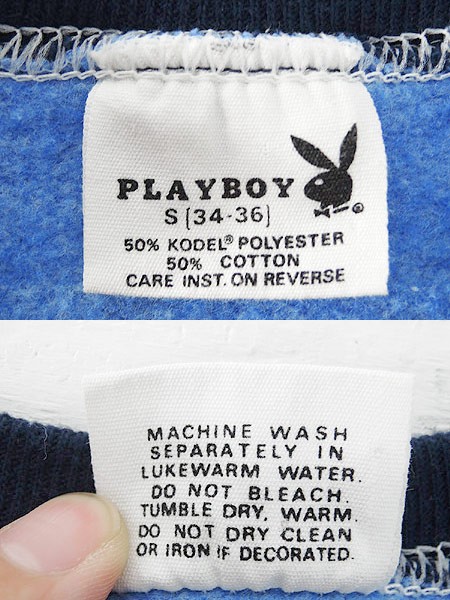 Ladies ブランドPLAY BOY プレイボーイ カラー青 メール便不可 コンディション★★★ 素材ポリエステル・コットン 表記サイズS (34 - 36) スタッフコメント右袖付近に色やけのようなダメージ感あり。全体に毛玉、使用感があります。 実寸サイズ 着丈 63 cm 身幅 46 cm 袖丈 27 cm ラグラン袖の為、襟元から袖先までの計測 ※ウエスト・ヒップ以外は平置き採寸