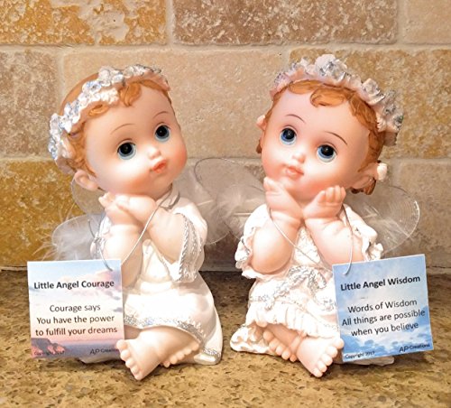 Angels of Wisdom and Courage | Angel figurines with inspirational messages. Gift set of 2 home décor figurines, beautifully hand painted, 5.5” tall