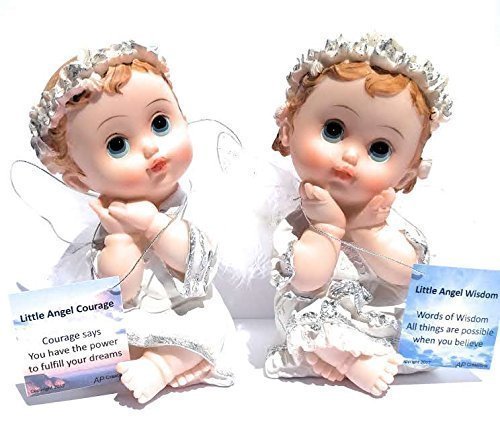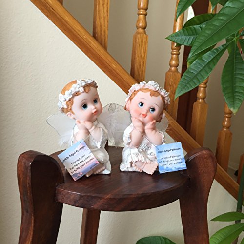 Inspirational message tags read: “Little Angel Courage - Courage says: You have the power to fulfill your dreams”; “Little Angel Wisdom - Words of Wisdom: All things are possible when you believe”