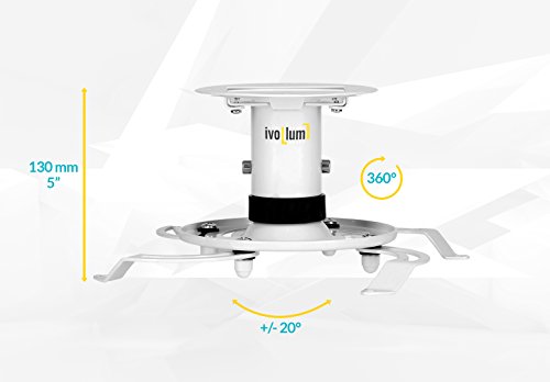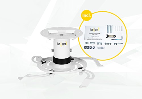 ivolum universal projector ceiling mount With the ivolum universal projector ceiling mount PDH130 you get a very flexible and widely adaptable projector ceiling mount. The variable arms and load capacity of up to 15kg allows use with almost all popular projectors. The short length of only 13cm ensures an unobtrusive installation.
