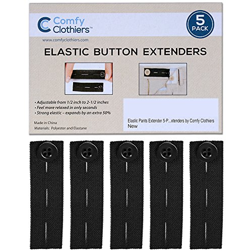 ADJUSTABLE - has 3 button slots to adjust these pants extenders, plus the elastic is stretchy.