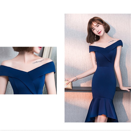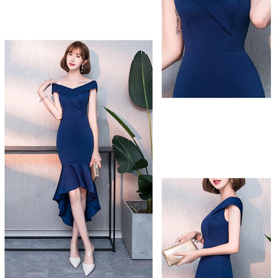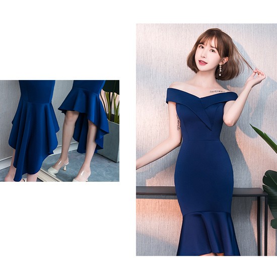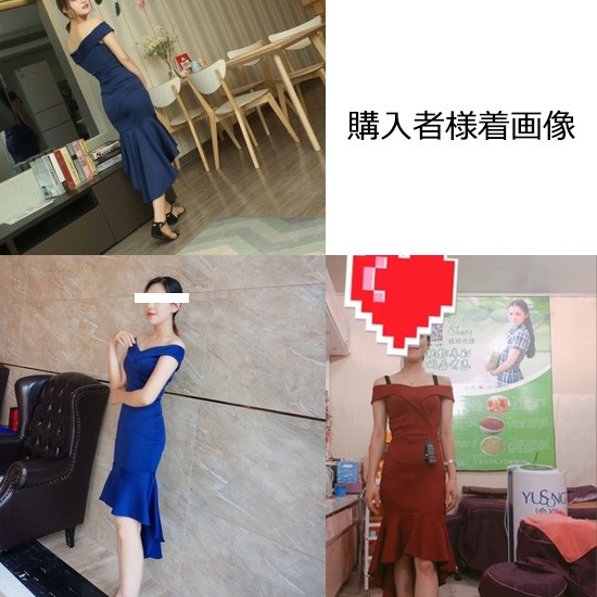 伸縮性のあるタイトなシルエットとフィッシュテールのすそが印象的なドレス。
