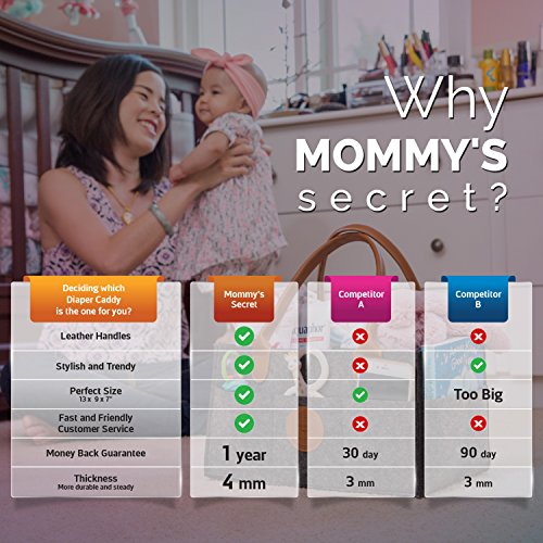 1 YEAR SATISFACTION GUARANTEE: Here at Mommy’s Secret we are very confident about the quality and the practicality of the baby diaper caddy. We want to make sure that you feel confident, too, that’s why we offer you a 1-year money back satisfaction guarantee. So get the baby diaper holder and try it out! If you’re not happy with it, we will refund every last penny. So don’t hesitate to contact us! Our friendly customer service will respond within 24 hours!
