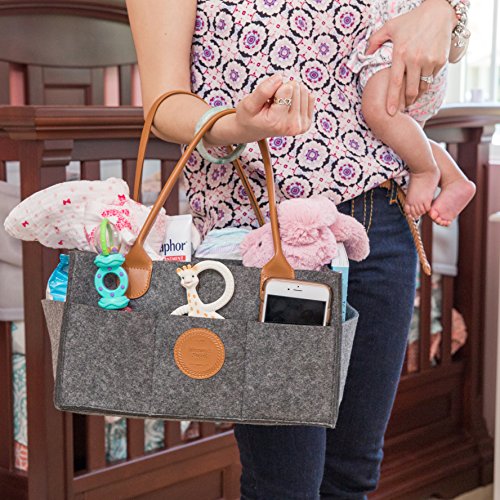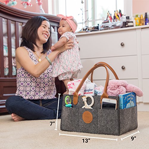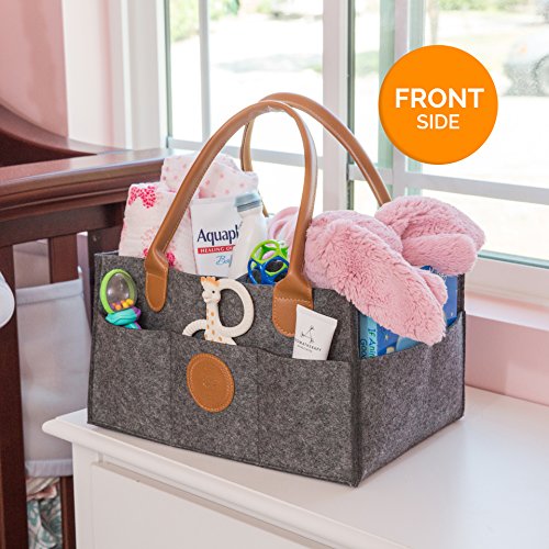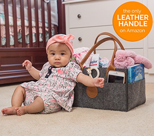 UNDENIABLE QUALITY AND DURABILITY: The heavy duty leather handles will never get ripped and the frame of the storage basket will never bend from the weight of its content. It’s made with high quality materials and it’s built to last. The baby diaper caddy is also a great baby shower gift idea, since it’s durable, practical and pretty!