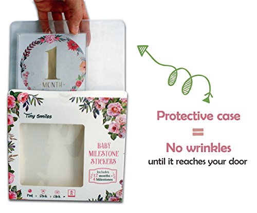 - PREMIUM ECO-FRIENDLY MATERIAL: We did extensive research to find out what parents struggle with when using milestone stickers. “Not sticky enough”, “easily wrinkled”, “poor ink quality”, “glare”, and “small numbers” are the main complaints. We proudly inform you that you won’t face any of these problems with our stickers. Our stickers are made of high quality smudge, water, and scratch resistant. We use matte finish, which means no glare. They are very sticky and reusable.