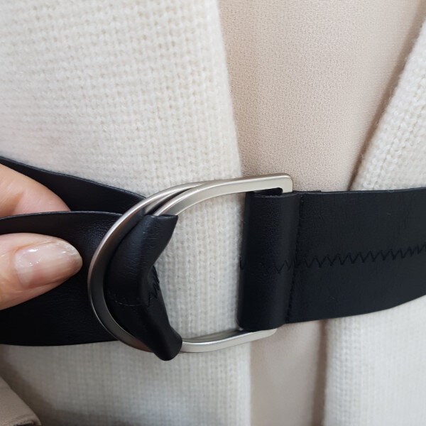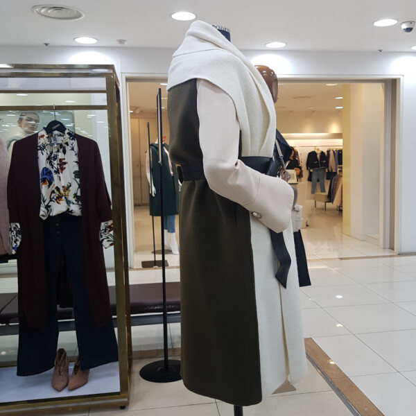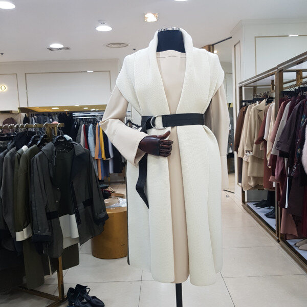 니트배색의 롱베스트로 벨트가 세트입니다.