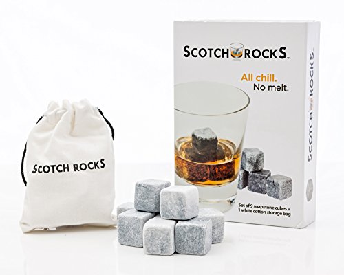 -. Brand : Scotch Rocks -. Color : Grey -. EAN : 0608729832508 -. Feature : ENJOY EACH & EVERY SIP Whiskey stones chill spirits rapidly but don't melt and dilute your drink / READY IN A HURRY Scotch Rocks reach optimal temperature with as little as 4 hours in the freezer / SUPERIOR QUALITY Don't settle for mass produced sipping stones! Choose handcrafted Scotch Rocks! / THE ULTIMATE WHISKEY LOVER'S SET Gift boxed set of 9 whiskey stones or rocks & a white cotton carry bag / THE NATURAL WAY TO CHILL 100% genuine soapstone ice cube alternatives are nontoxic and long lasting -. Label : Scotch Rocks -. Manufacturer : Scotch Rocks -. Model : SR-01 -. MPN : SR-01 -. PackageQuantity : 1 -. PartNumber : SR-01 -. ProductGroup : Kitchen -. ProductTypeName : KITCHEN -. Publisher : Scotch Rocks -. Studio : Scotch Rocks -. Title : Scotch Rocks Set of 9 Artisinal Hand Cut Whisky Chilling Rocks in Scotch Rocks Gift Box with White Cotton Carrying Pouch -. UPC : 608729832508