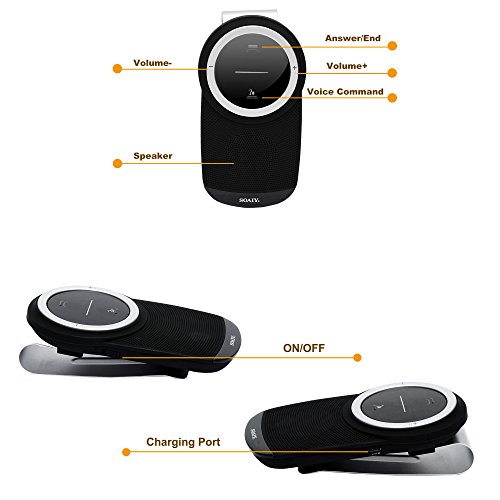 SOAIY S-61 Hands-free Wireless Bluetooth Car Speakerphone with Car Charger, Car Bluetooth System with Auto Power On Function, Bluetooth Car Kit for iPhone, iPad, Samsung Galaxy, HTC, LG, Android