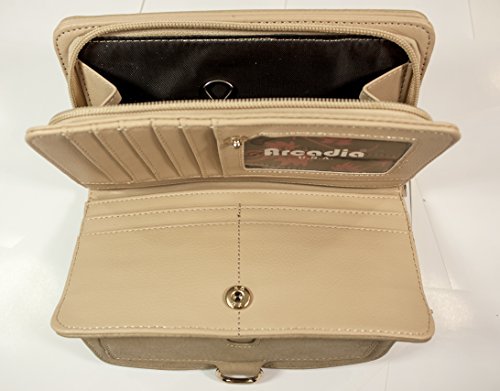 Arcadia U.S.A. Fashion Convienient Wallet Coin Purse Pocket Book bi-fold And Main Zipper Pocket XDW013-TN (Tan)