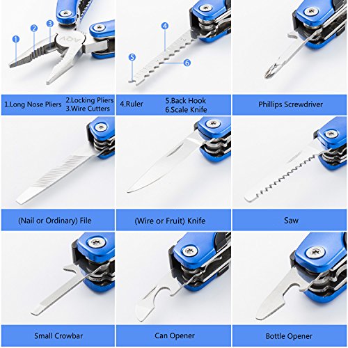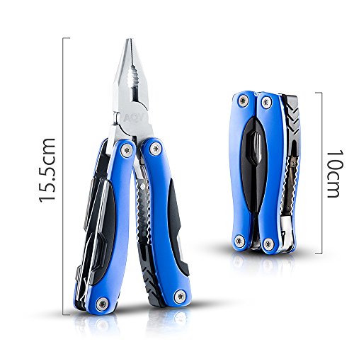 MultiTool Knife, AQV Multi tool 15 in 1 Pocket With Folding Saw, Wire Cutter,Pliers,Sheath.Multipurpose,Fishing,Hunting,Camping,Survival,Hiking, Car Set (Blue)