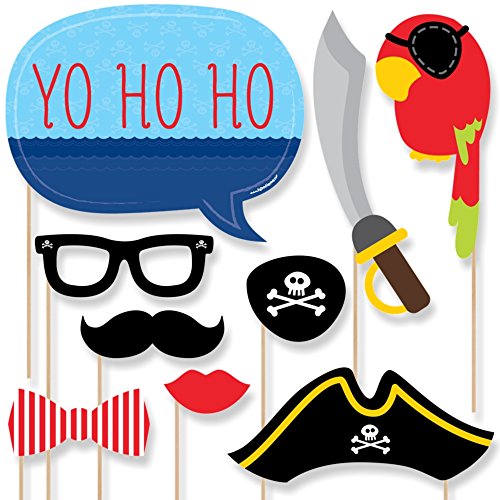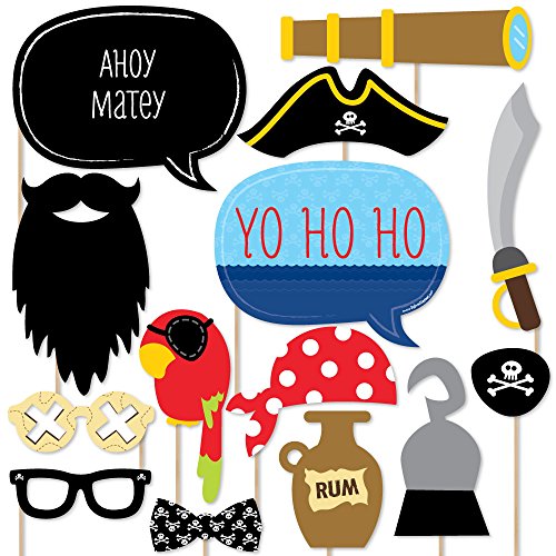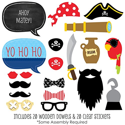 20-Piece Baby Shower or Birthday Party Photo Booth Props Kit INCLUDES 20 Ahoy Mates! Pirate photo booth props, 20 wooden dowel sticks and adhesives for assembly. EASY ASSEMBLY: Simply attach the printed DIY photo booth props to the wooden dowels with included adhesive and reinforcing stickers.