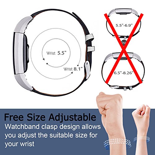 Top Material & Fashionable Look : Made of 100% Cowhide, NOT plastics or PU or other synthetics material. All materials do NOT contain the harmful substance. Anti-slip and sweat absorbent when using, bring you the soft and comfortable wearing experience. The special stitching craftsmanship suited the style of different color bands, which makes your Fitbit Charge 2 look much more exquisite and shows your unique taste in the meanwhile.