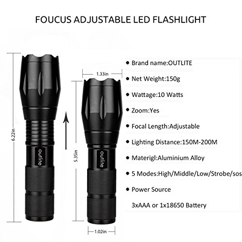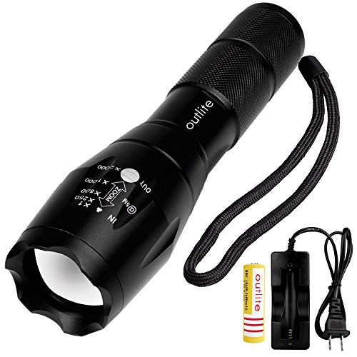 Outlite A100 High Powered Handheld Flashlight, Rechargeable 18650 Battery and Charger Included, Portable LED Tactical Flashlight with Adjustable Focus and 5 Light Modes, Tac Light For Camping Hiking