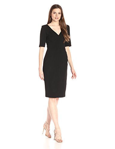 The sophisticated jeanette sheath is cut from our double face viscose blend. Designed to flatter, it features a body skimming sheath silhouette, front and back v-neckline, and 3/4 sleeves. Fully lined with center back hidden zipper.Feature