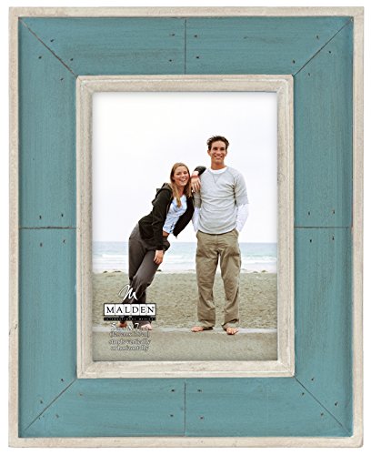 Malden International Designs Sun Washed Woods Turquoise Distressed With Inner Frame Border Picture Frame, 5x7, Turquoise