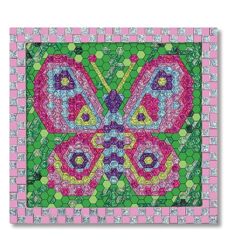 Watch your child's face fill with delight as the intricate design emerges on this beautiful butterfly mosaic-by-number craft. With over 650 glittering sticker tiles, there are even enough to decorate the wooden frame. Great for developing attention span and fine motor skills!Feature