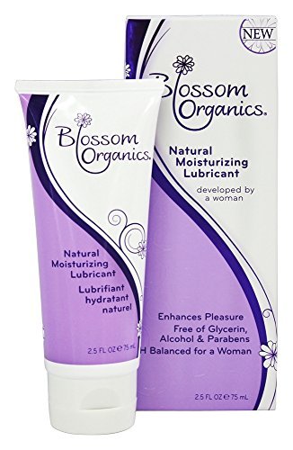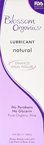Blossom Organics natural moisturizing lubricant. Expertly formulated by a woman for a woman. Organic aloe based long lasting lubricant enhances sexual pleasure. Top rated by consumers. Natural pure ingredients. No parabens, glycerin, alcohol, silicones or petrochemicals! No artificial fragrances, dyes or flavorings. Moisturizing for women with vaginal dryness. Vegan friendly. Compatible with natural rubber latex and polyisoprene condoms.