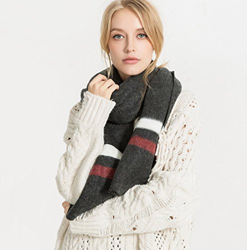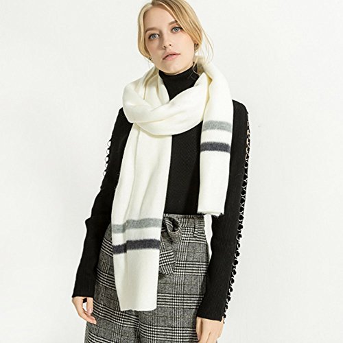 YUNEE Stripe Cashmere Scarf Two Horizontal Stripes Warm Wrap