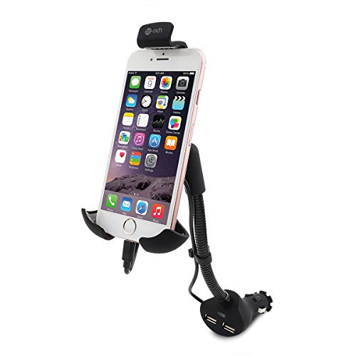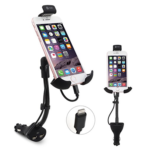 Te-Rich 2-in-1 Cigarette Lighter Phone Holder Car Mount Charger with Built-in Lightning Cable for iPhones - Dual USB, 3.1A Max