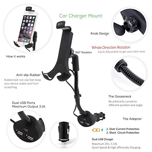 - 360 DEGREE ROTATION - Flexible goosenack and adjustable cradle clamp, easy to view your device at any angle or orientation while driving