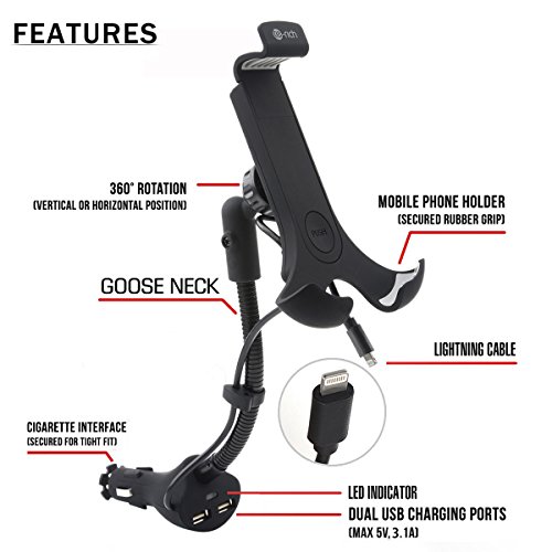 - WHAT YOU GET - Te-Rich New 2-in-1 Car Phone Holder Mount Charger with Built-in Lightning Cable, our worry-free 12-month warranty and friendly customer service