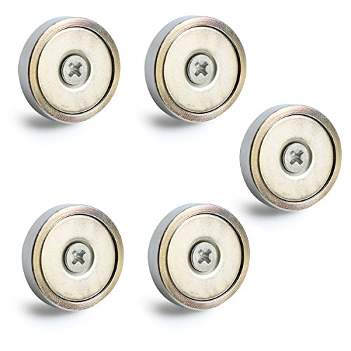 NEO Magnetics N50 Neodymium Round Base Magnet Fastener, Stainless Steel, Pack of 5, 1.3"diameter, Holds up to 100lbs Powerful Neodymium Cup Magnet - Countersunk Mounting Hole - Screws Included