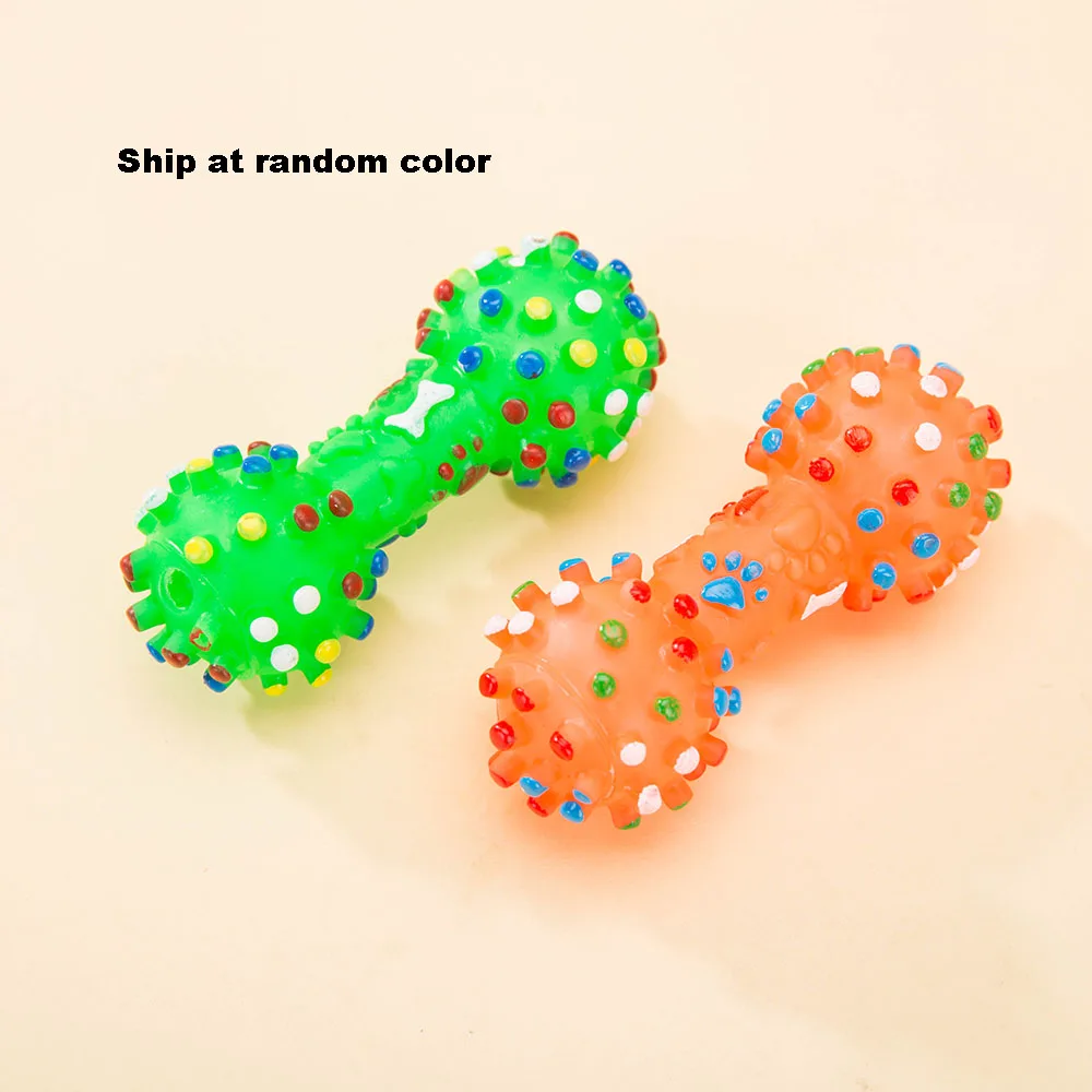 Hipidog Pet Dog Cat Puppy Sound Polka Dot Squeaky Toy Rubber Bone Shoes Vegetable Dumbbell Chewing Toy Funny Toys for Pets Dogs