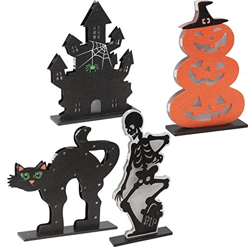 - These Halloween House Deluxe Light Up Standing Plaques (Battery Operated) add a glamorous and simultaneously uncanny aura that is sure to entertain your friends and family. Life is short; make it magical. Assorted - colors/Designs May Vary.